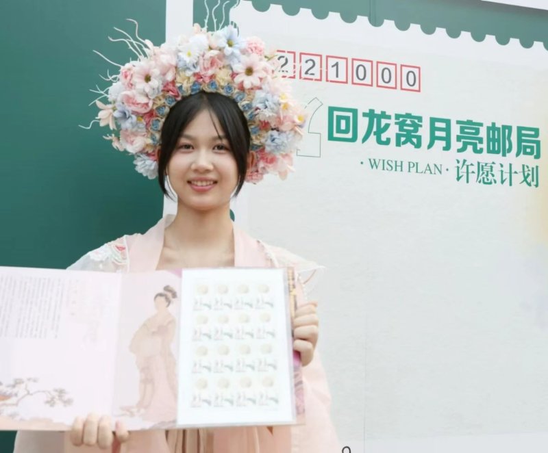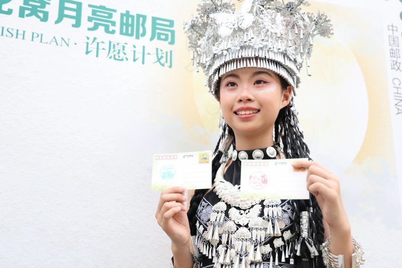 “13号展区刚设立好,就吸引了不少的本地市民和外地游客,他们来这里有的祈求感情圆满、有的祈求学业有成、有的祈求家人健康......”现场的邮政工作人员介绍道,邮政提供免费的明信片,盖上月亮主题邮局的印戳,游客们可以自行选择将自己的心愿收藏、粘贴上墙或者邮寄给远方的ta......