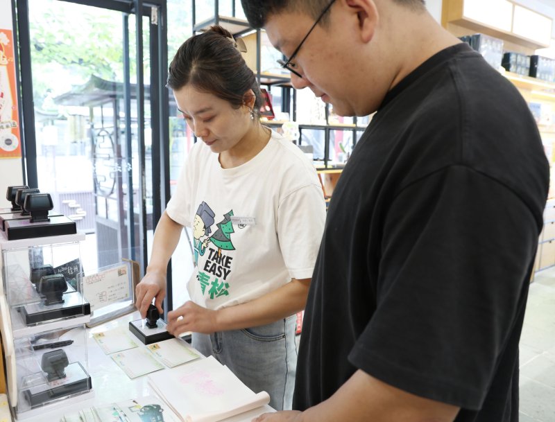 “没想到邮局还能这么好玩,不仅能打卡集戳,还能把我和闺蜜的照片打印出来,上面还带了个小月亮标志,这也太可爱了吧。”一起来玩的小闺蜜说道。