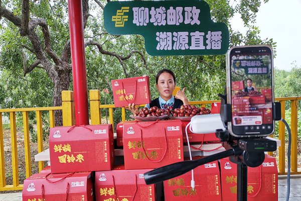 “我们今天就是在圆铃大枣的原产地为大家进行直播,大家可以看到我身后到处都是红彤彤的大枣。圆铃大枣个大皮薄、肉厚核小,甘甜香脆、营养丰富。现在下单,我们现场采摘、装箱、发货,两三天就能送到您家门口,而且我们在包装运输过程中做了精心防护,保证大枣不会出现破损情况,大家可放心购买。”在采摘节开幕式现场,圆铃大枣邮政溯源直播团队向全国各地网友推介圆铃大枣。“这个枣看着就好吃,送人也倍儿有面子”“邮政溯源直播,产品质量有保证,已下单”……直播间里,网友们与主播积极互动,踊跃下单。