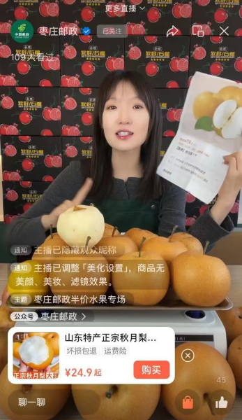 镜头前,特邀主播金句频出,与邮政小姐姐一起卖力带货秋月梨——他的来头可不简单,他是山东省枣庄市薛城区乡村振兴局吕副局长。