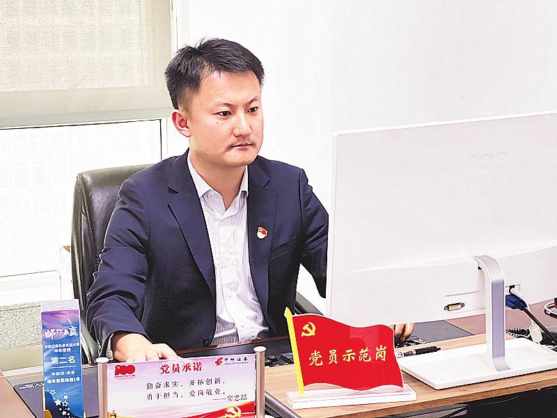 窦忠喆是中国邮政有信念、怀梦想、愿奉献、肯奋斗的青年党员的代表。加入中邮证券江苏分公司两年多的时间,通过不懈努力,他赢得了硕果累累的回报。由窦忠喆牵头营销落地债券承销业务13单,发行总金额达91.5亿元;带领团队营销落地非银财务顾问项目12个,促成非银放款金额达35.8亿元;联动邮储银行江苏省分行落地同业存款业务数十笔,金额达270亿元。