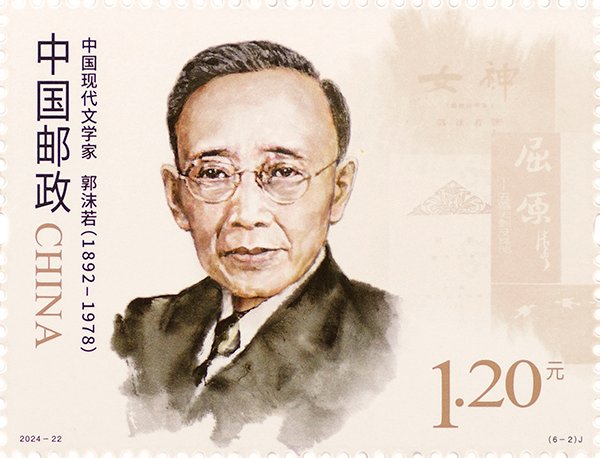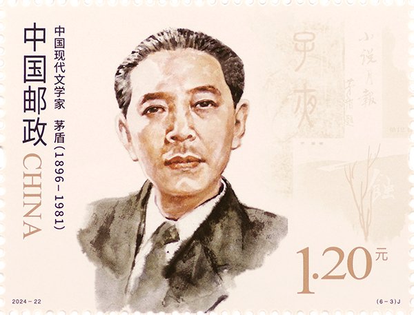 邮票第一枚主题为:鲁迅。鲁迅(1881—1936),原名周树人,字豫才,浙江绍兴人。中国现代文学家、思想家和革命家。1902年赴日本留学,后弃医从文。鲁迅是中国现代文学的奠基人,其作品忧愤深广,有着强烈的批判精神与人文关怀,包括杂文、小说、论文、散文、翻译作品等约一千万字,对“五四运动”后的中国文化产生了深刻影响。邮票背景书影为《野草》《呐喊》《无题·惯于长夜过春时》《自题小像》。 邮票第二枚主题为:郭沫若。郭沫若(1892—1978),原名郭开贞,字鼎堂,笔名沫若,生于四川乐山沙湾。郭沫若是百科全书式的文化巨匠,是中国现代文学家、诗人、翻译家。1949年当选全国文联主席,后任政务院副总理兼文化教育委员会主任、中国科学院院长等。郭沫若是中国新诗奠基人,开创并引领了一代诗风,代表诗集《女神》是中国新诗史上一座不可磨灭的丰碑。郭沫若也是中国历史剧的重要开创者,代表历史剧《屈原》,是我国现代历史剧的经典之作。邮票背景书影为《女神》《屈原》《前茅》。 邮票第三枚主题为:茅盾。茅盾(1896—1981),原名沈德鸿,字雁冰,生于浙江桐乡。中国现代小说家、文学评论家与文艺理论家。茅盾是五四新文化运动的先驱者之一,是五四文坛重要的批评家,其主持的《小说月报》是新文学的重要阵地。代表作《子夜》是最负盛名的长篇小说,开创了社会剖析派小说的经典范式,是中国现实主义小说的里程碑,对后来的长篇小说创作影响深远。新中国成立后,茅盾担任文化部首任部长、中国文联副主席、中国作协主席等职。1981年,中国作家协会设立茅盾文学奖,以推动社会主义文学事业的繁荣。邮票背景书影为《子夜》《蚀》《小说月报》。 邮票第四枚主题为:巴金。巴金(1904—2005),四川成都人,原名李尧棠,字芾甘。中国现代作家、翻译家、出版家。1949年出席第一次全国文代会,当选文联常委。后担任上海市文联副主席、中国作家协会主席、全国文联副主席。2003年11月,被国务院授予“人民作家”荣誉称号。代表作有“爱情三部曲”、“激流三部曲”、《随想录》和《寒夜》等。邮票背景书影为《寒夜》《家》《第四病室》《灭亡》。 邮票第五枚主题为:老舍。老舍(1899—1966),满族,原名舒庆春,字舍予,生于北京。老舍是中国现代小说家、剧作家。新中国第一位获得“人民艺术家”称号的作家。曾任中国文联副主席、中国作家协会副主席、北京市文联主席。他是一位多产的现实主义作家,他的作品多用朴素、凝练、口语化的语言写就,鲜明生动,妙趣横生,充满着强烈的时代精神和浓郁的生活气息,被誉为语言大师。代表作有《四世同堂》《骆驼祥子》《茶馆》等。邮票背景书影为《茶馆》《四世同堂》《骆驼祥子》。 邮票第六枚主题为:曹禺。曹禺(1910—1996),原名万家宝,祖籍湖北潜江。曹禺是中国现代话剧的泰斗与奠基人,也是现代话剧艺术的一座高峰。代表作有《雷雨》《日出》《原野》《北京人》《家》等。新中国成立后,曾任中央戏剧学院副院长、北京人民艺术剧院院长、中国文联主席、中国剧协主席等职,作为卓越的戏剧教育家,曹禺为新中国培养了一批批戏剧人才,为我国艺术教育事业作出重要贡献。邮票背景书影为《雷雨》《日出》《北京人》《胆剑篇》。 本套邮票的印制,公司通过高精度胶版工艺和独特色彩设计的巧妙运用,展现了文学家们的风采与魅力,在无形中传播了中华文化的精髓与力量。