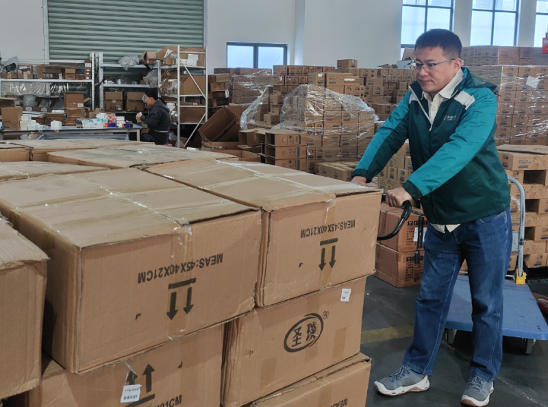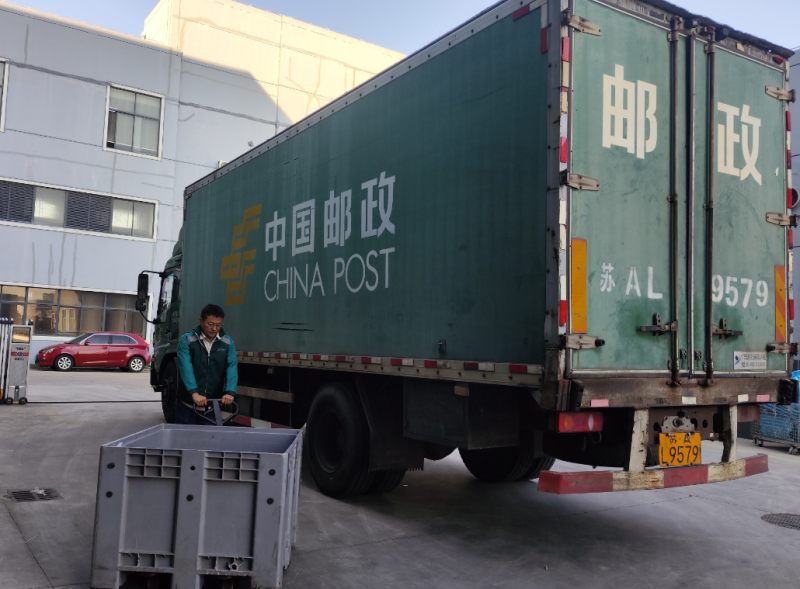 “最近每天都要发几万件的货,但邮政收寄得很及时,发货速度也很快。”陈先生介绍道,作为本地头部电商企业,主营纸巾、垃圾袋等日用品。为了帮助他们不断提升仓内作业效率,常州邮政根据“仓+配+集”的服务思路,使用一体机、简易集包笼、皮带机等设备,将分拣效率提升至0.6万件/小时。