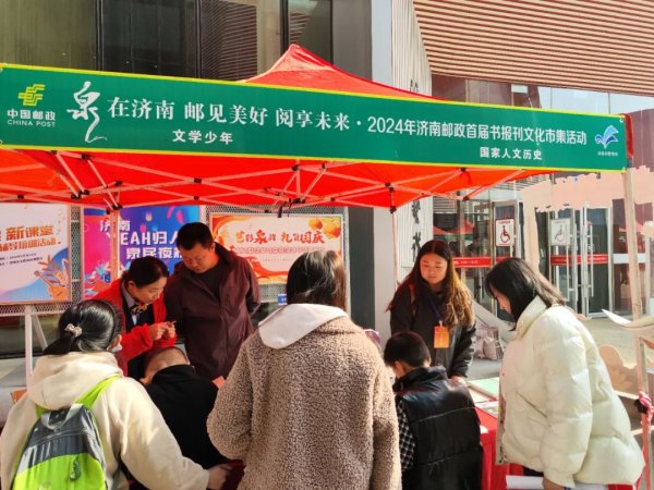 本届文化市集设在济南市图书馆中心馆馆外连廊,现场有六大展区,“‘泉’在济南”阅读邮礼、“畅‘邮’书海”订阅有礼、“悦读冬日”惠民图书、“方寸映乾坤,集邮展国脉”集邮展销、“阅享未来”声音邮局、“团结是力量”民族娃娃纪念戳打卡、“邮走”济图、技艺“邮”新等趣味活动精彩纷呈,还有畅销期刊杂志、美丽泉城明信片、有声明信片等万份好礼免费送。