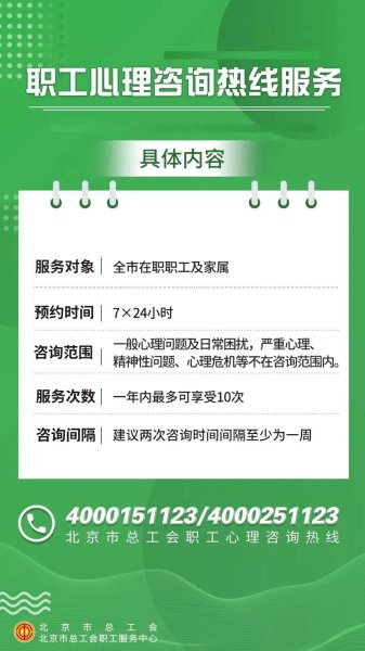在构建职工心理健康服务体系方面,机关工会采取了多项有力措施。近年来,每年制定《职工心理健康关爱系列活动方案》,明确重点工作任务,并借助上级工会职工心理援助通道,为广大职工提供线上心理健康咨询服务,同时开通7×24小时电话心理咨询服务。此外,每星期三、星期五,机关工会会员及家属还可以预约市总工会全天免费现场心理咨询服务,进一步满足了职工多样化的心理需求。