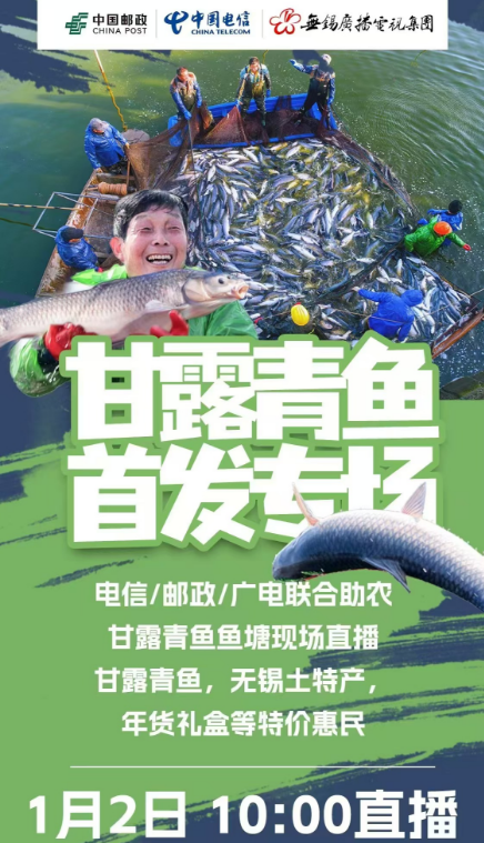 “宝子们,我们正在无锡甘露青鱼的捕捞现场。瞧!这青鱼,活蹦乱跳,肉质那叫一个鲜嫩!” 在1月2日的 “甘露青鱼首发专场”直播中,主播热情洋溢地向观众介绍着。