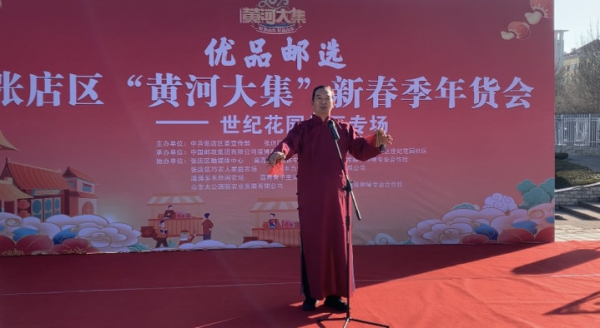 1月10日上午,由中共张店区委宣传部、张店区农业农村局主办,中国邮政集团有限公司淄博市张店区分公司、马尚街道党工委、张店区世纪花园社区承办的“优品邮选”张店区黄河大集新春季年货会,首场活动在世纪花园社区开启。