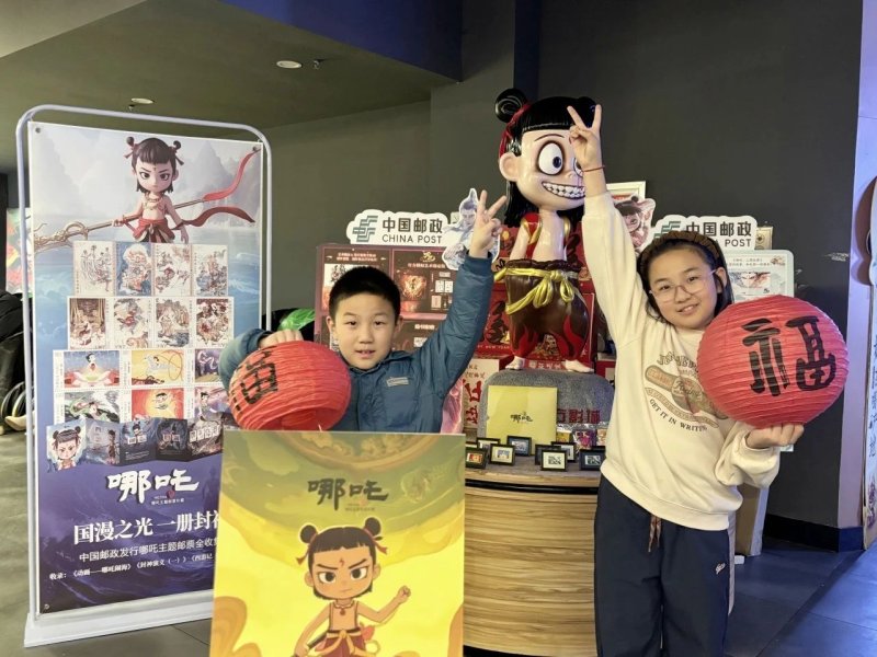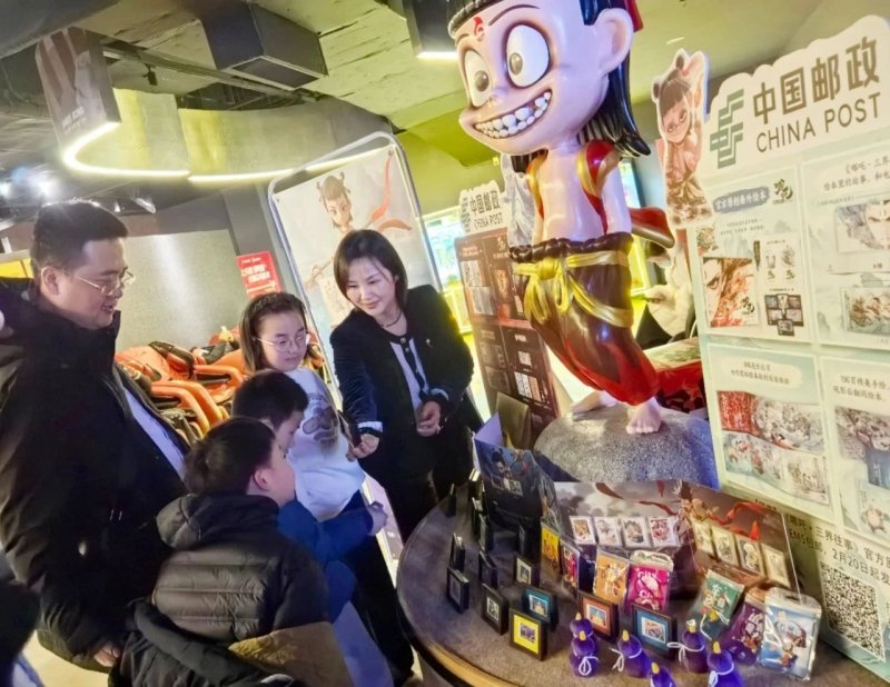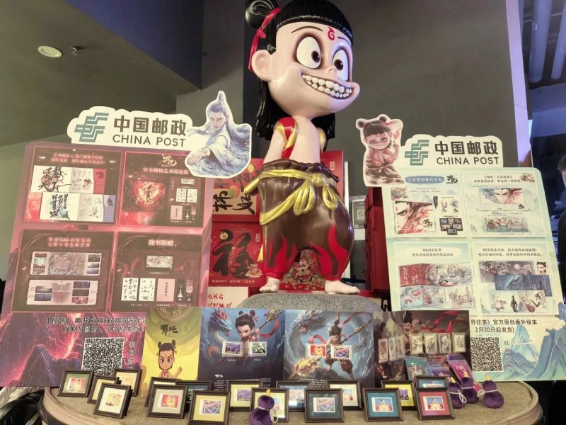 “展台刚布放好,就吸引了不少影迷,他们对电影周边的文创产品兴趣浓厚......”现场的工作人员介绍道。“哪吒”快闪展台还设置了邮品展列、打卡集戳、文创解说等专区,哪吒系列周边产品丰富多样,包括官方原创番外绘本、官方授权艺术设定集、主题邮册等。