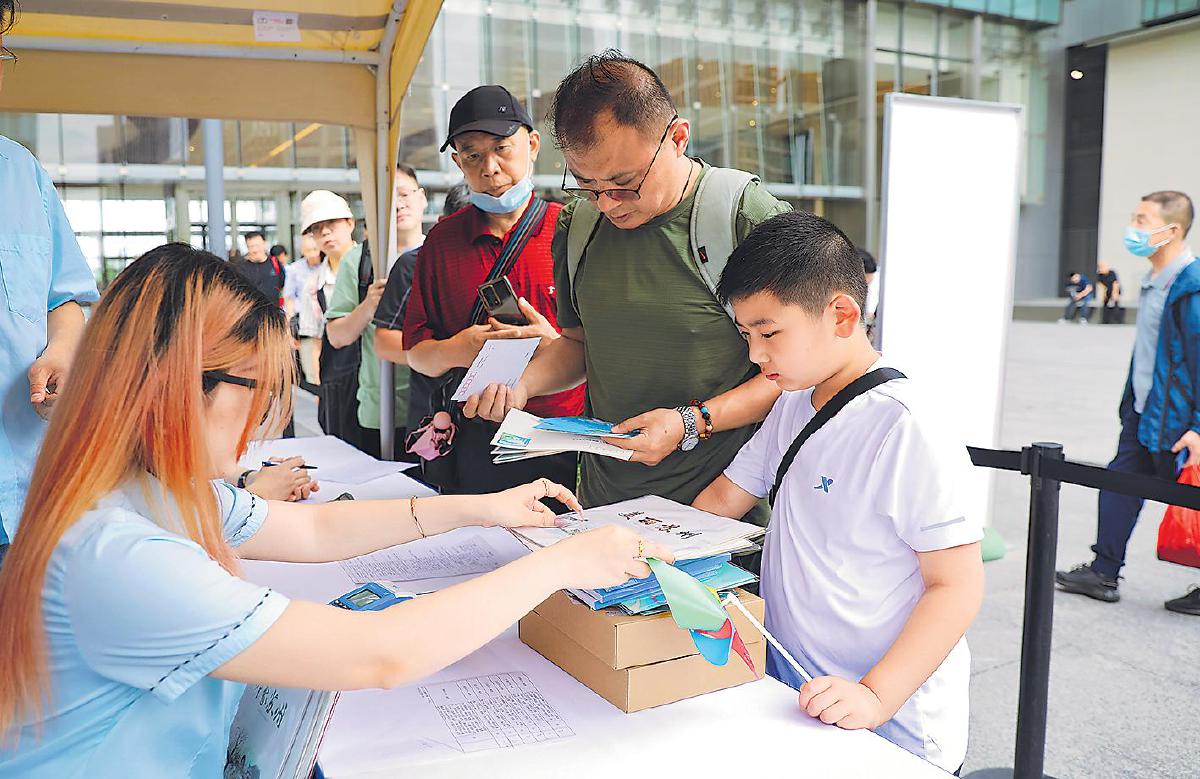 市民在苏州工业园区30周年主题邮局购买邮品。