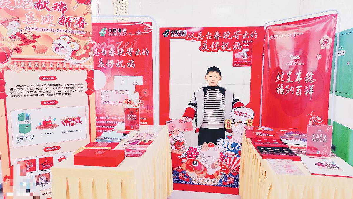 樟树市邮政分公司将春晚临时邮局设置在市博物馆内,大红色的春节主题装饰夺人视线,洋溢着欢乐热闹的氛围。“从总台春晚寄出的美好祝福”打卡墙更是成了“热门景点”,一拨又一拨的市民前来拍照留念。大家在感受浓厚文化氛围的同时,还通过“寄贺卡”小程序下单制作专属贺卡,并加盖春晚纪念戳。活动期间,该分公司共销售“从总台春晚寄出的美好祝福”产品2套、蛇年压岁金钞15套,成功发展集邮会员35户,“寄贺卡”小程序订单量有111单。