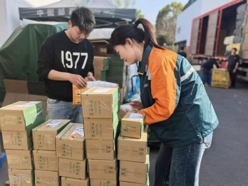 走进龙坞茶镇的浙茶集团电商仓配中心,现场一派忙碌,十几名工人正在全力以赴加急包装。