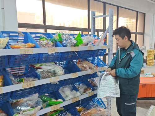 为保障食材品质,分公司深入研究各类生鲜食材的保鲜需求,积极探究最优配送方案。在分拣环节上,根据不同生鲜的保鲜要求,确定不同包装方案。针对蔬果类食品,采用“保湿袋+防压纸托”双层包装,辅以环保温控袋锁住水分;针对易碎食品,配备硅胶减震架及珍珠棉缓冲层,有效分散震动;针对水产品、冷鲜肉等,配备冰袋与隔热膜、装入冷链专用箱,确保品质不打折。