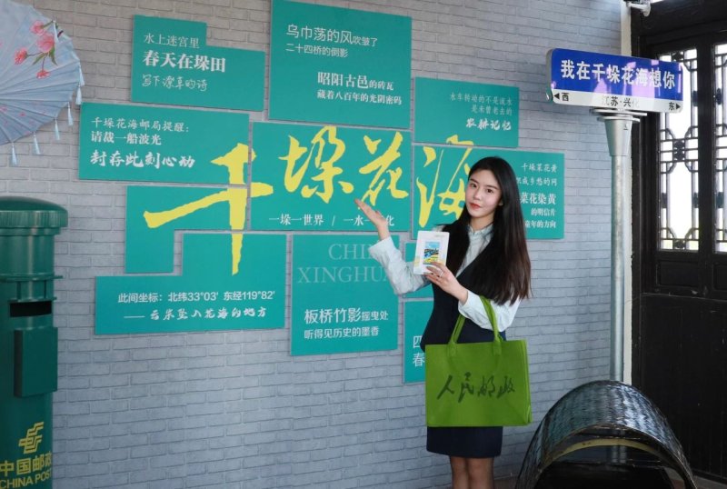 垛田水畔,一座以“千垛花海”为主题的邮局悄然落成。兴化邮政巧妙融合邮政文化与水乡风情,增设“水上船舫邮局体验区”。游客在赏花之余,可现场定制纪念邮册、选购“花样”文创产品,书写明信片寄给远方亲友,沉浸式感受“邮文化”的魅力。截至目前景区邮局销售明信片1800余张,“邮局+旅游+文化”叠加,有力促进了地方旅游人气和邮政品牌传播。