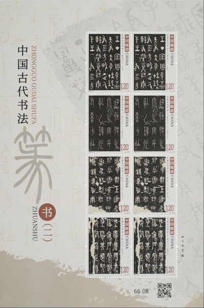 《中国古代书法——篆书(二)》是中国邮政在2011年4月发行《中国古代书法-草书》之后,时隔14年又一次发行的书法系列邮票。一套四枚,选取了大盂鼎、中山王厝铁足鼎、石鼓·吾车刻石、琅琊刻石作为邮票内容,每一枚都承载着厚重的历史文化。 如何将中国古代汉字书写艺术的精髓,完美地呈现在邮票这一方寸天地之间,把如此珍贵厚重的文化瑰宝呈现在大众眼前,成为了此次邮票设计的核心重点与最大难点。此次邮票的表现内容是极为珍贵的书法拓本。据邮票编辑干止戈先生透露,为了寻找到这些不现世的独家收藏文物拓本,他不辞辛劳,与众多专家进行了深入的沟通与交流,最终才找到了理想的拓本。 在设计过程中,我主要从两个关键方面着手。其一,针对设计方案中的拓本底色,摒弃了传统的纯黑色,大胆选用深灰色作为底色。对于斑驳的文字,进行了精心的选择性修缮。这个过程极富挑战性,既要在拓本上尽量展现出完整清晰的文字,让观众能够领略其书法之美,又要小心翼翼地保持拓本的原始风貌,其中的尺度把控十分艰难。其二,在书法篆书文字数量与大小的选择上,经过了反复的斟酌与考量。力求让文字大小适中、布局合理,既要让观众尽可能多地欣赏到书法篆书的独特魅力,又要充分结合邮票本身的特性。同时,我在邮票铭记的地方也进行了独具匠心的设计,将其制作成斑驳的质感,使得整个设计方案在细节上内外呼应,浑然天成。在邮票规格大小的设定方面,严格保持了系列作品的同一性。 我觉得,正是方案中这些精心雕琢的细节设计,赢得了评审专家的高度认可与赞赏。最终,在众多设计提案中,我的方案脱颖而出,得以成功采用。在此,我要向给予我帮助与支持的同事以及专家们,致以最诚挚的感谢。