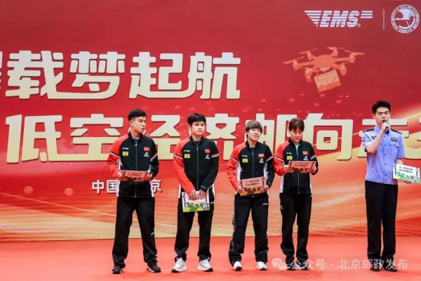 北京邮电大学党委书记续梅、校长徐坤,中国邮政集团有限公司寄递事业部副总经理、中邮无人机(北京)有限公司执行董事许宁,中国国家乒乓球队运动员林诗栋、向鹏、王艺迪、陈幸同出席活动。