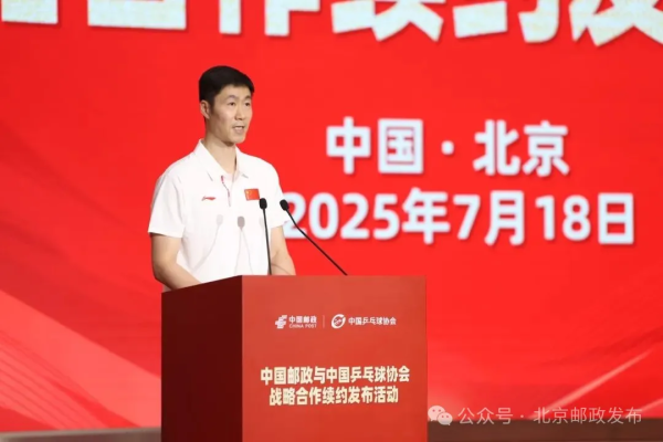 王励勤在致辞中表示,此次续约是两支“国家队”初心与使命的共鸣。“人民邮政为人民”与“国球惠民”的持续融合,不仅标志着中国乒协与中国邮政双方伙伴关系的深化,更是我们携手服务国家战略、推动全民健身、弘扬中华体育精神的新起点。双方优势互补,将“乒乓精神”随邮路传递至千家万户,为助力强国建设贡献力量!