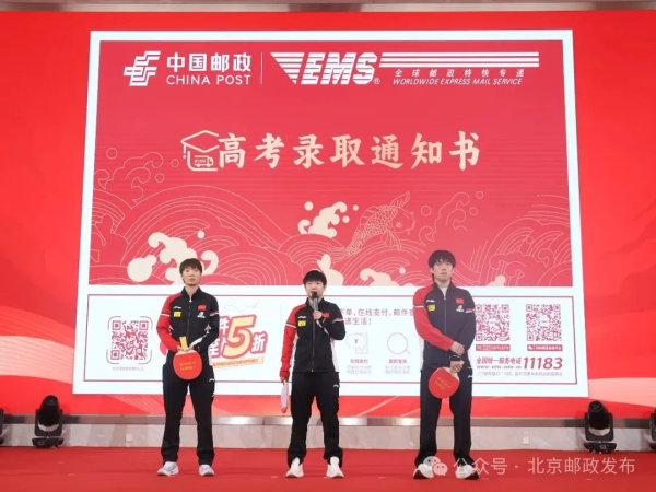发布活动现场,中国乒乓球队国手们参与了中国邮政速递物流(EMS)最新封套的发布,为今年高考考生送出了收到理想大学录取通知书的祝福,与中国邮政邮票设计师一道共同创作丙午马年生肖邮票图稿,现场活动热烈,充分展现了国球魅力与冠军风采,也全方位凸显了中国邮政“使命必达”的精神。