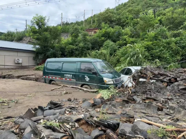 “砰”“砰”“砰”,7月26日晚,一阵急促的敲门声打破了冯家峪邮政所的寂静。当时在整理邮件的彭兴斗疑惑,如此大雨,竟还有用户前来所里取件?他透过窗户发现原本的院门已经消失不见,而眼下正在“敲门”的是随洪水而至不停在门前乱转的树桩和树杈。