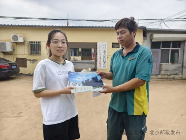 同日,密云北庄镇邮政所的投递员徐振宝也成功将北庄镇灾后首封录取通知书投送到家住在达峪沟的冯同学手上。冯同学脸上洋溢着喜悦,感激之情溢于言表。徐振宝微笑着鼓励她,并祝她学业有成。