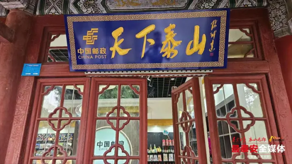近日,泰山文旅集团国山公司与中国邮政集团有限公司泰安市分公司联合打造的“天下泰山”主题邮局文创店,在泰山岱庙东配殿启动试运营。