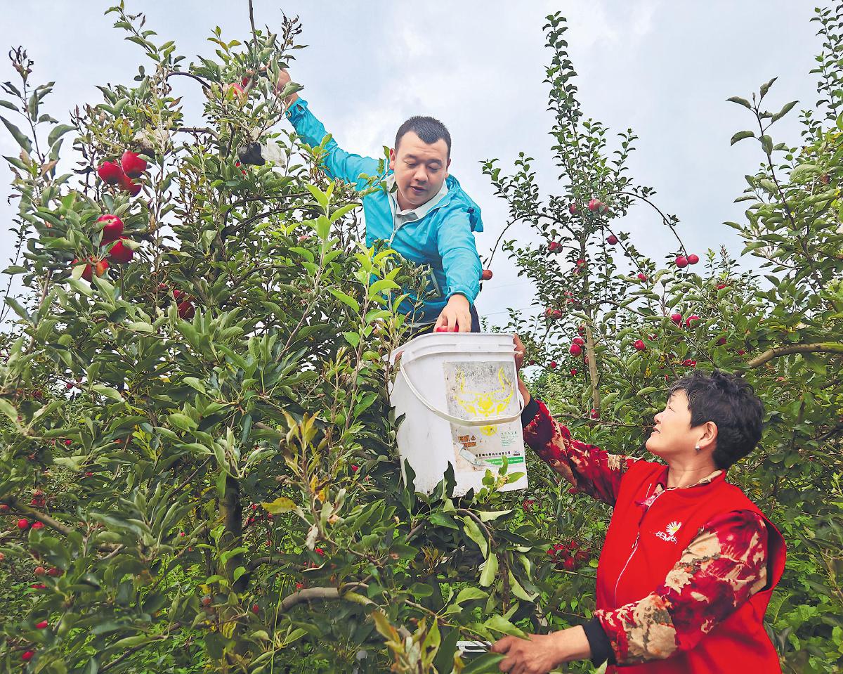 8月20日,云南省曲靖市马龙区邮政分公司工作人员来到当地果园,和果农一起采摘苹果,为订单发货做准备。进入苹果采摘季以来,马龙邮政通过邮乐网直播带货、线下展销等方式帮助果农拓展销路,日订单峰值突破3000件。同时,邮政工作人员驻点合作果园,全程参与选果,还采用为寄递苹果量身定制的包装材料,让消费者品尝到完好无损的鲜果。