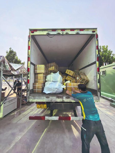 在邮件投递和收寄环节,北京邮政严格执行工作规范。这是工作人员熟练地将包裹装上邮车。