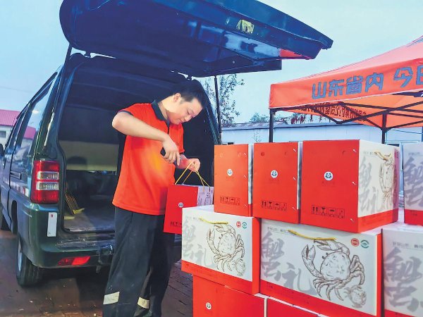 东营邮政以党建引领筑牢服务根基,“党员帮扶队”深入垦利区养殖一线,全程参与大闸蟹捆扎、分拣、包装及揽收。80余人的团队驻扎塘口,落实“驻企驻点驻户”服务——午间与养殖户同吃一锅饭,餐后立即投入打包;国庆假期全员坚守岗位,以“一条龙”服务打通产销“最初一米”。