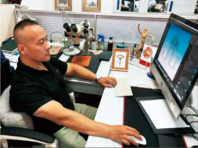《中国农业大学建校一百二十周年》纪念邮票是我继《东北大学建校一百周年》后第二次设计大学题材邮票,既感荣幸,又有压力,这不仅是一次艺术创作,更是一份承载深厚历史情感与时代使命的责任。 从接到任务起,我便陷入了对农大百年历程的深入探寻中。农大肇始于1905年的京师大学堂农科大学,历经风雨,一路发展壮大,这一百二十年的时光沉淀下的,是无数农大人的智慧与汗水,是对农业教育和科研矢志不渝的坚守。如何在小小的邮票上展现这百廿风华,成为我首要思考的问题。 在设计元素的选择上,我将目光聚焦在具有代表性的“农科大学”老校门上。老校门作为农大历史的见证者,承载着几代人的记忆,它古朴庄重,是农大深厚底蕴的象征。但一所不断发展的高校,仅有历史的沉淀还不够,还需展现出它的与时俱进。于是,我在画面中适当融入现代化的校园风光,高楼林立的教学楼、各色的树木、花坛与老校门相互映衬,寓意着农大在传承中发展,在创新中前行 。 在表现手法上,我延续自己擅长的雕刻结合淡彩的设计语言。雕刻线条刚劲有力,能够精准地勾勒出老校门的建筑轮廓,凸显其历史的厚重感,每一刀的镌刻都仿佛在诉说着农大往昔的故事。淡彩的运用则为画面增添了灵动与柔和,营造出温馨而美好的氛围,展现出农大如今蓬勃的生机。冷暖色的对比是画面的一大亮点,冷色调的老校门在暖色调的现代化建筑、植物与蓝天的衬托下,空间感和层次感瞬间增强,让整个画面简洁而不失丰富,明快又富有内涵,力求给观者带来强烈的视觉冲击 。 设计过程中,也面临诸多挑战。一方面,要在极其有限的邮票尺寸内,合理安排元素,避免画面过于拥挤或空洞;另一方面,要兼顾艺术审美与大众喜好,确保设计既能得到专业人士的认可,又能让广大师生、校友以及集邮爱好者产生共鸣。为此,我反复修改草图,编辑李金薇也与学校相关部门、专家进行深入交流,广泛征求意见。从最初的创意构思到最终的定稿,历经数次打磨,只为呈现出最完美的作品 。 如今,邮票设计已完成,回顾这段历程,心中满是感慨。这不仅是一枚邮票,更是一张文化名片,它将带着中国农业大学一百二十年的荣耀与梦想,飞向五湖四海,让更多人了解农大,感受农业教育的魅力与价值。希望未来,它能成为连接校友情感的纽带,成为记录农大历史、传承农大精神的不朽符号 。