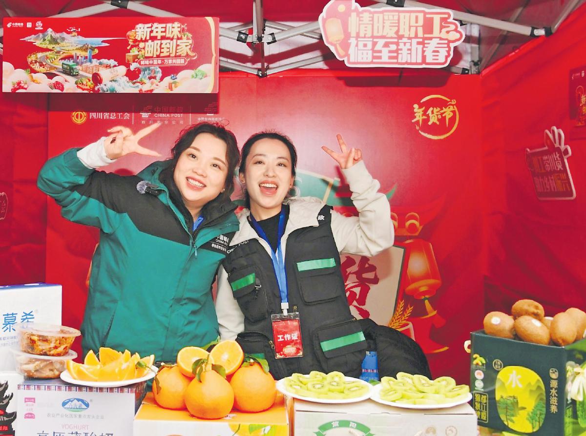 12月18日至19日,四川省总工会、省邮政分公司、邮储银行四川省分行联合开展了“川工带川货·助力乡村振兴”年货节暨“情暖职工·福至新春”工会普惠专项活动。此次活动设立成都主会场和绵阳、眉山、广安、凉山、资阳五地分会场,以线下展销、直播带货、互动体验等形式,集中展示21个市(州)邮政甄选的农特产品和工业品,为全省职工提供了优质优价的年货选择。今年以来,四川邮银与省总工会已开展川工带川货直播322场,吸引超500万人次职工参与,带动农特产品销售1.78亿元。