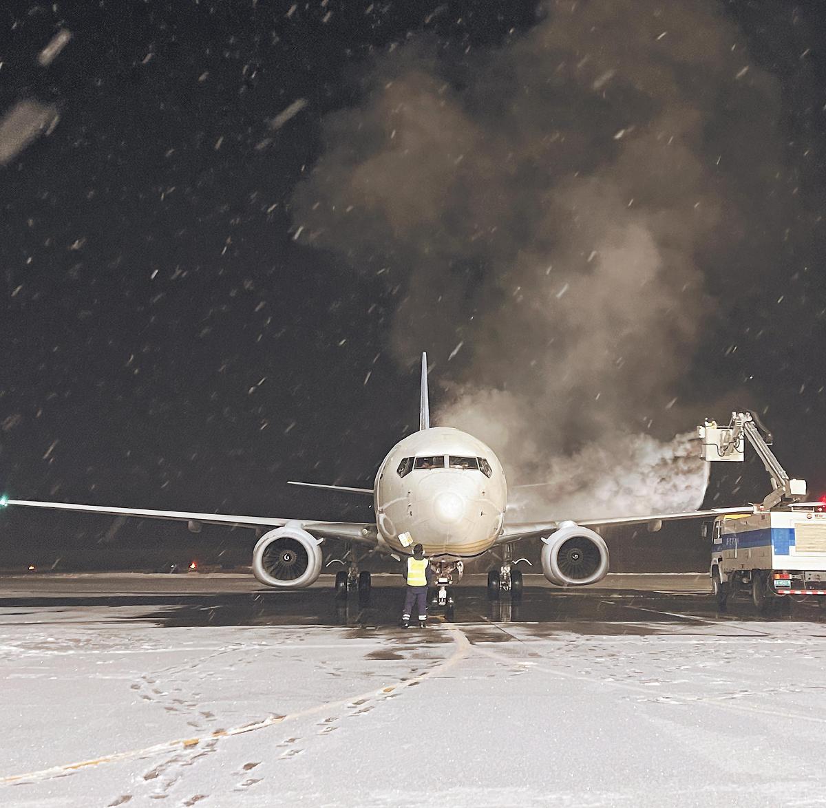 1月29日深夜,邮航机务人员在新疆石河子花园机场指挥除冰车喷洒除冰液,保持飞机适航状态。1月4日,石河子至南京“极速鲜”航线开通,助力当地军垦农牧产品走向全国。面对冬季的寒冷与降雪,邮航机务团队克服天气影响,以专业维护确保航班不受低温影响,守护着连接牧场与市场的“空中桥梁”。