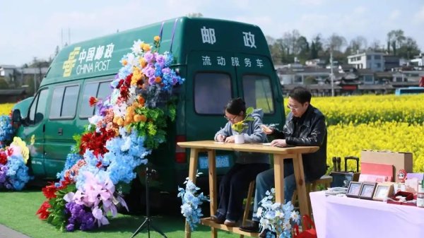 “金海雪山”因春季油菜花与漫山李花交相辉映而得名。今年,贵定邮政在去年基础上优化服务,依托邮政流通服务车,将邮局搬进了花海。现场划分出打卡拍照区、文创展示区、明信片书写寄递区和助农产品销售区,让邮政文化与田园风光融为一体。