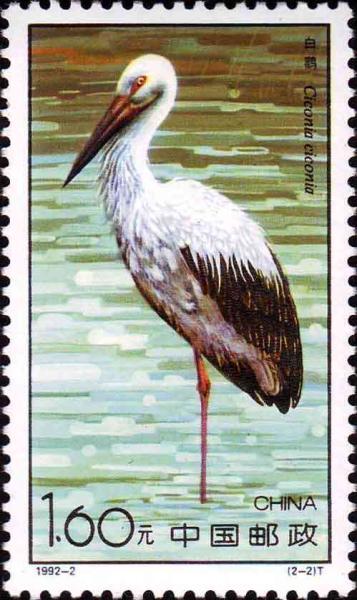 国家邮政局1992年2月20日发行《鹳》特种邮票1套2枚。