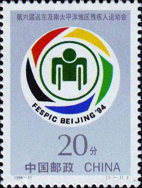 国家邮政局1994年9月4日发行《第六届远东及南太平洋地区残疾人运动会》纪念邮票1套1枚。