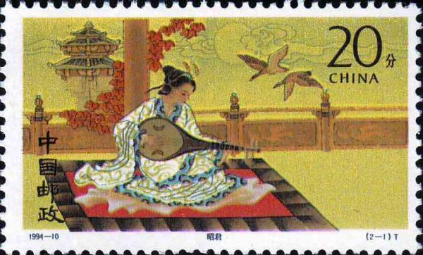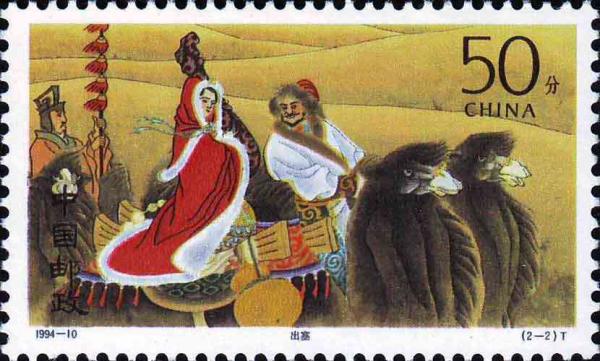 国家邮政局1994年8月25日发行《昭君出塞》特种邮票1套2枚,小型张1枚。