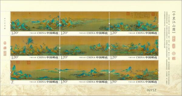 另:特别制作《千里江山图》(长卷版)特种邮票,面值13.20元,整张规格570mm×65mm。