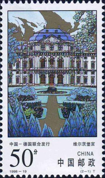 国家邮政局1998年8月20日发行《承德普宁寺和维尔茨堡宫》特种邮票1套2枚。(与德国联合发行)