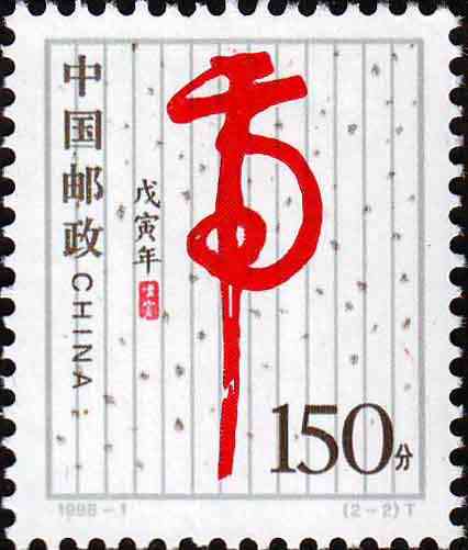 国家邮政局1998年1月5日发行《戊寅年-虎》特种邮票1套2枚。