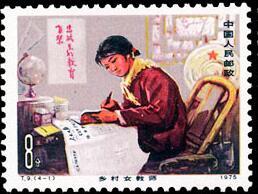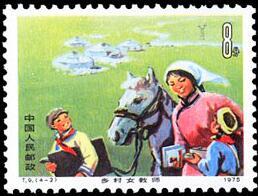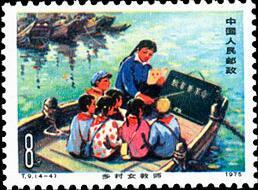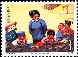 (1)8分 认真看书学习 500万枚 (2)8分 巡回教学 500万枚 (3)8分 开门办学 500万枚 (4)8分 水上小学 500万枚 1975.3.8。影写版。P11×11.5。40mm×30mm。50(5×10)。[G]。万维生。北京邮票厂。