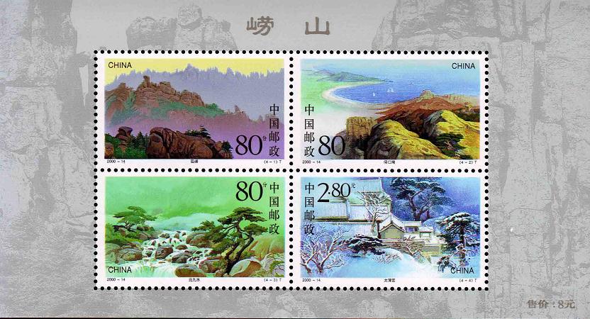 国家邮政局2000年7月15日发行《崂山》特种邮票1套4枚,小全张1枚。