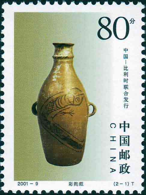 国家邮政局2001年6月12日发行《陶瓷》特种邮票1套2枚。(与比利时联合发行)