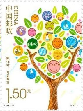 中国邮政2014年9月10日发行《教师节》纪念邮票1套2枚。
