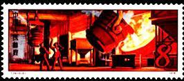 (1)8分 炼焦 1400万枚 (2)8分 炼铁 1400万枚 (3)8分 炼钢 1400万枚 (4)8分 轧钢 1400万枚 (5)8分 成品 1400万枚 1978.7.22。 影写版。P11.5。 62×26mm。35(5×7)。[G]。孙传哲。北京邮票厂。