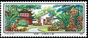 (1) 8分 春到曲溪楼 1200万枚 (2) 8分 远翠阁之夏 1200万枚 (3)10分 涵碧山房秋色 400万枚 (4)60分 冠云峰晴雪 100万枚 1980.10.25。影写版。P11.5。62mm×26mm。40(5×8)。孙传哲。北京邮票厂。