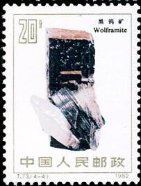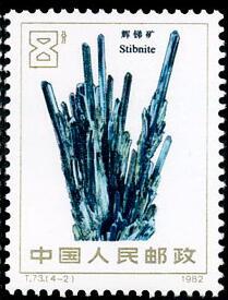 (1) 4分 雄黄 539.66万枚 (2) 8分 辉锑矿 1440.16万枚 (3)10分 辰砂 545.66万枚 (4)20分 黑钨矿 510.16万枚 1982.8.25。影写版。P11.5×11。30mm×40mm。50(10×5)。 许彦博。北京邮票厂。
