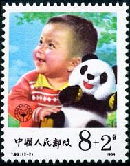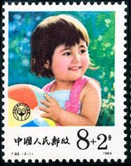 (1)8+2分 在阳光下 1596万枚 (2)8+2分 健康成长 1896万枚 1984.2.16。影写版。P11.5。31mm×38.5mm。50(10×5) [A]黄妙发。[D]陈晓聪。北京邮票厂。 注:新中国发行的第一套附捐邮票。