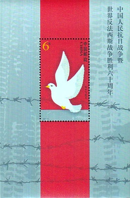 国家邮政局2005年8月15日发行《中国人民抗日战争暨世界反法西斯战争胜利六十周年》纪念邮票1套4枚,小型张1枚。