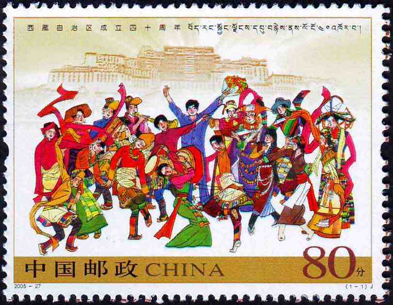 国家邮政局2005年8月26日发行《西藏自治区成立四十周年》纪念邮票1套1枚。