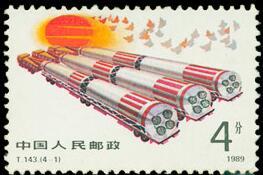 (1) 4分 开进 2129.65万枚 (2) 8分 监测 2209.45万枚 (3)10分 发射 1982.65万枚 (4)20分 飞行 2090.45万枚 1989.11.15。胶版。P11。杨奕。北京邮票厂。 (1)(2)(4):40mm×27mm、28(4×7)。 (3):27mm×40mm、28(7×4)。