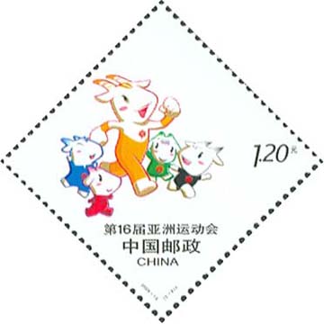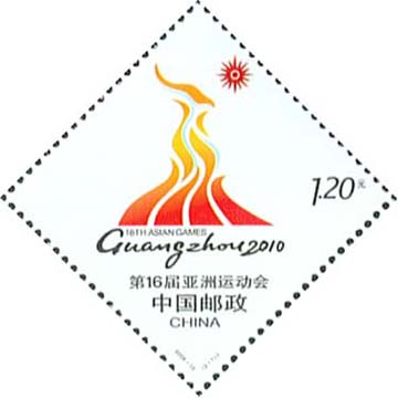 国家邮政局2009年6月30日发行《第16届亚洲运动会》纪念邮票1套2枚。