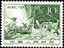 一套邮票的印制,基本上都是由一种印刷版别完成的。但也有少数的邮票,在一套邮票中采用了两种不同印刷方法印制。“遵义会议二十五周年”纪念邮票,便是有两种印刷版别的第一套邮票。